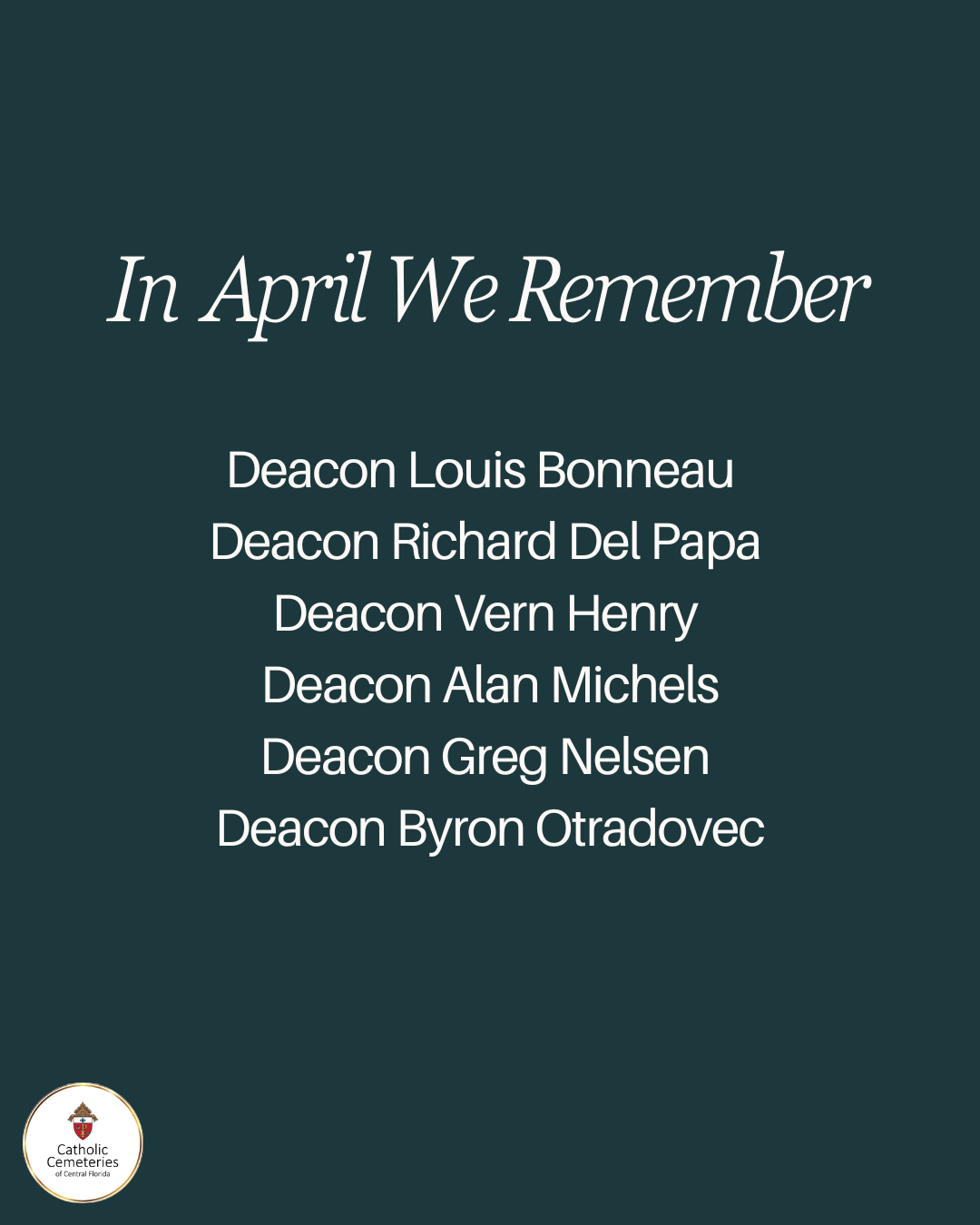 We invite you to join us for the monthly Mass of Remembrance for deceased Priests and Deacons of the Diocese of Orlando.