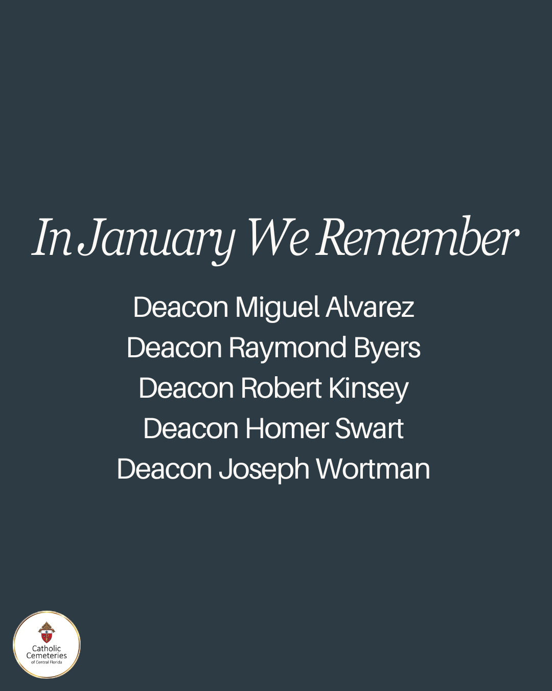 We invite you to join us for the monthly Mass of Remembrance for deceased Priests and Deacons of the Diocese of Orlando.