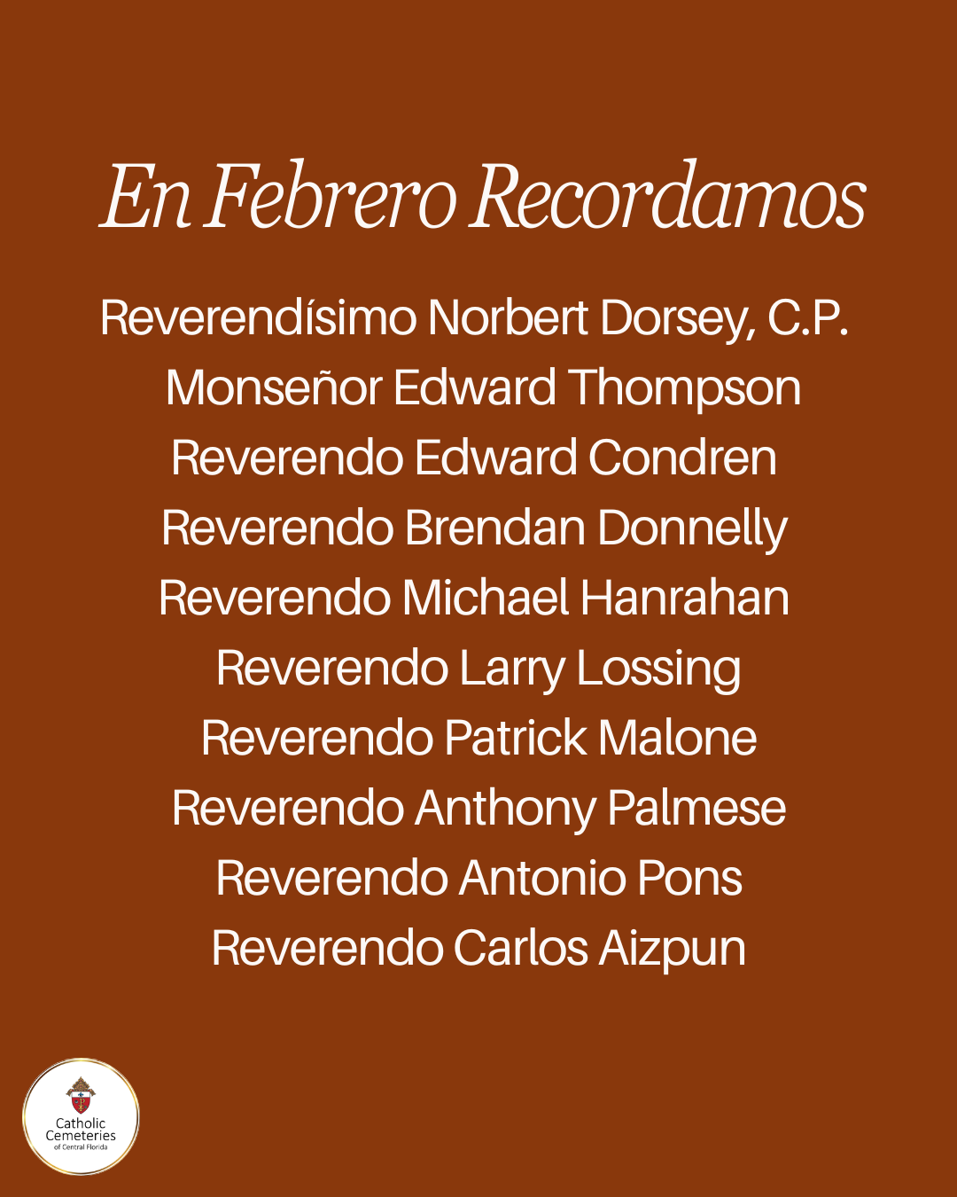 Lo invitamos a unirse a nosotros en la Misa mensual en Recuerdo de los Sacerdotes y Diáconos fallecidos de la Diócesis de Orlando.