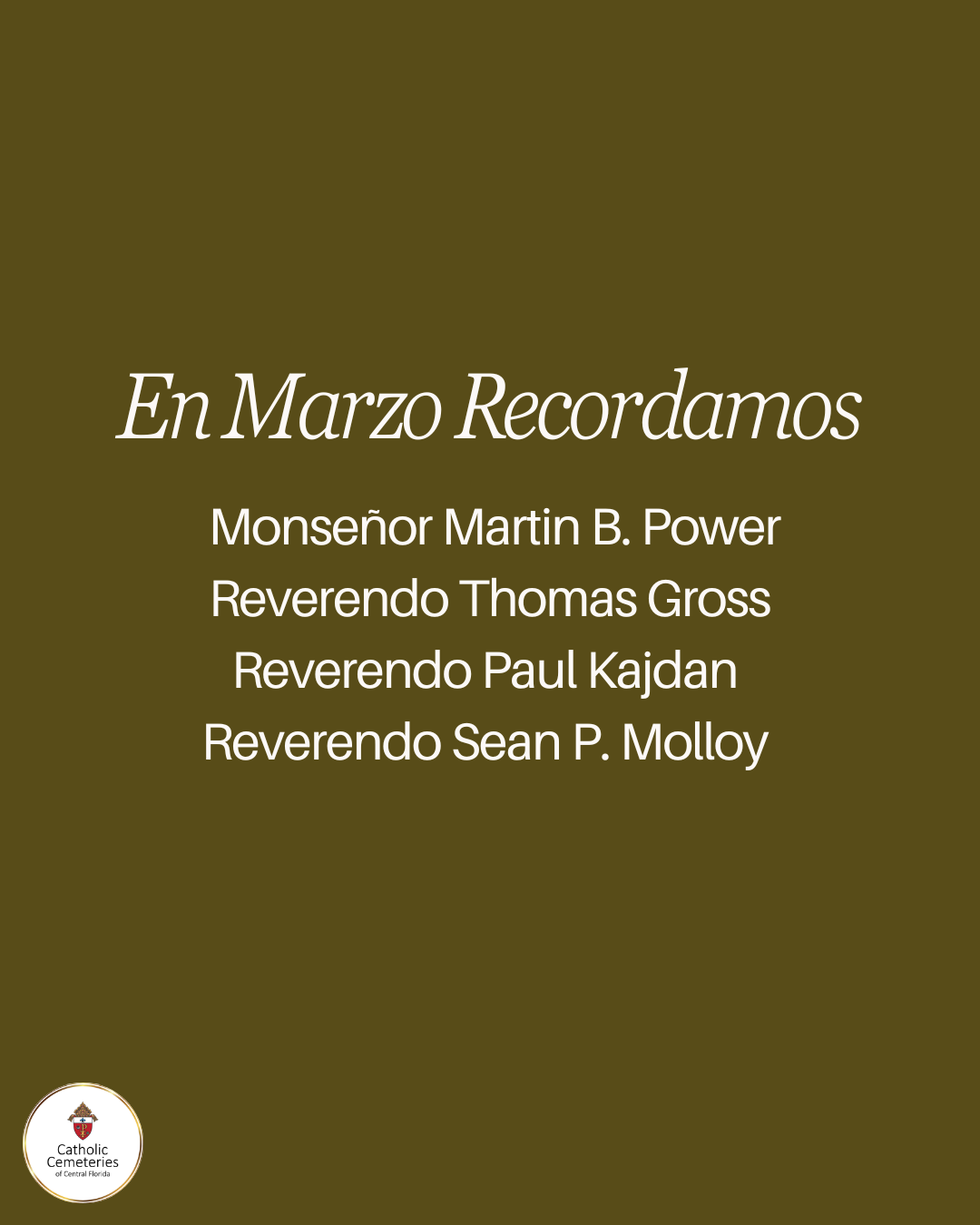 Lo invitamos a unirse a nosotros en la Misa mensual en Recuerdo de los Sacerdotes y Diáconos fallecidos de la Diócesis de Orlando.